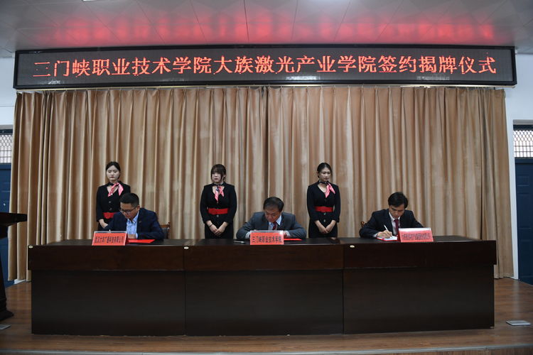 为深入贯彻落实国家职业教革改革发展规划纲要,进一步深化产教融合、校企合作,提高技术技能型人才培养质量,更好地服务国家发展战略和产业发展需要,学院携手大族激光科技产业集团股份有限公司(以下简称“大族激光”)、武汉大华广通科技有限公司(以下简称“武汉大华”)三方联合共同成立三门峡职业技术学院大族激光产业学院。