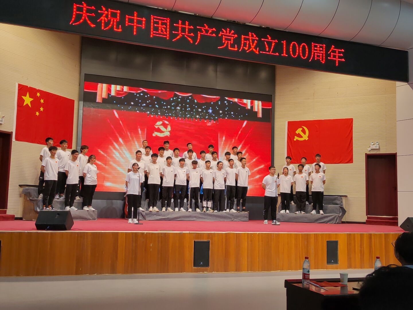 最终,机械制造与自动化专业、20级电子信息工程技术专业摘得桂冠,并列获得合唱比赛一等奖,19级物联网应用技术校企专业、20级工业机器人技术专业、20级物联网应用技术校企专业获评二等奖,19级工业机器人技术专业、20级电气自动化技术专业、20级物联网应用技术校企专业、20级供用电技术专业、20级电子信息工程技术激光专业、20级无人机应用技术专业获评三等奖。比赛最终以全场共唱同一首歌《没有共产党就没有新中国》圆满落幕,在场的全体师生集体起立,挥舞国旗,参与合唱,现场化作一片曳动的红色海洋。广大师生用真诚嘹亮的歌声,唱出了激情与冥想,唱出了责任与担当,唱出了对中国共产党百年华诞的诚挚祝福。