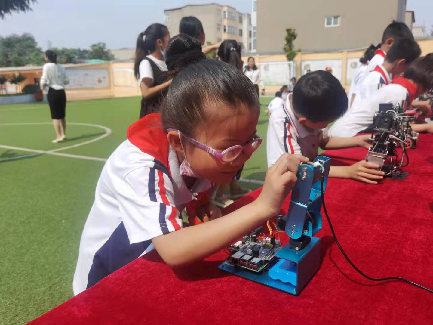 科技展览活动现场,“大黄蜂跳舞机器人”能够跟随音乐手舞足蹈,“两足机器人”在自由行走的同时还能完成翻跟头等动作,“平衡球”向小学生们展示了平衡的魅力,“手指上的音乐”左、右手同时触摸导线就能发出奇妙的音乐声,“工业机器人”能够按照设定程序完成指定动作,最引人注目的当属翱翔在空中的“无人机”。