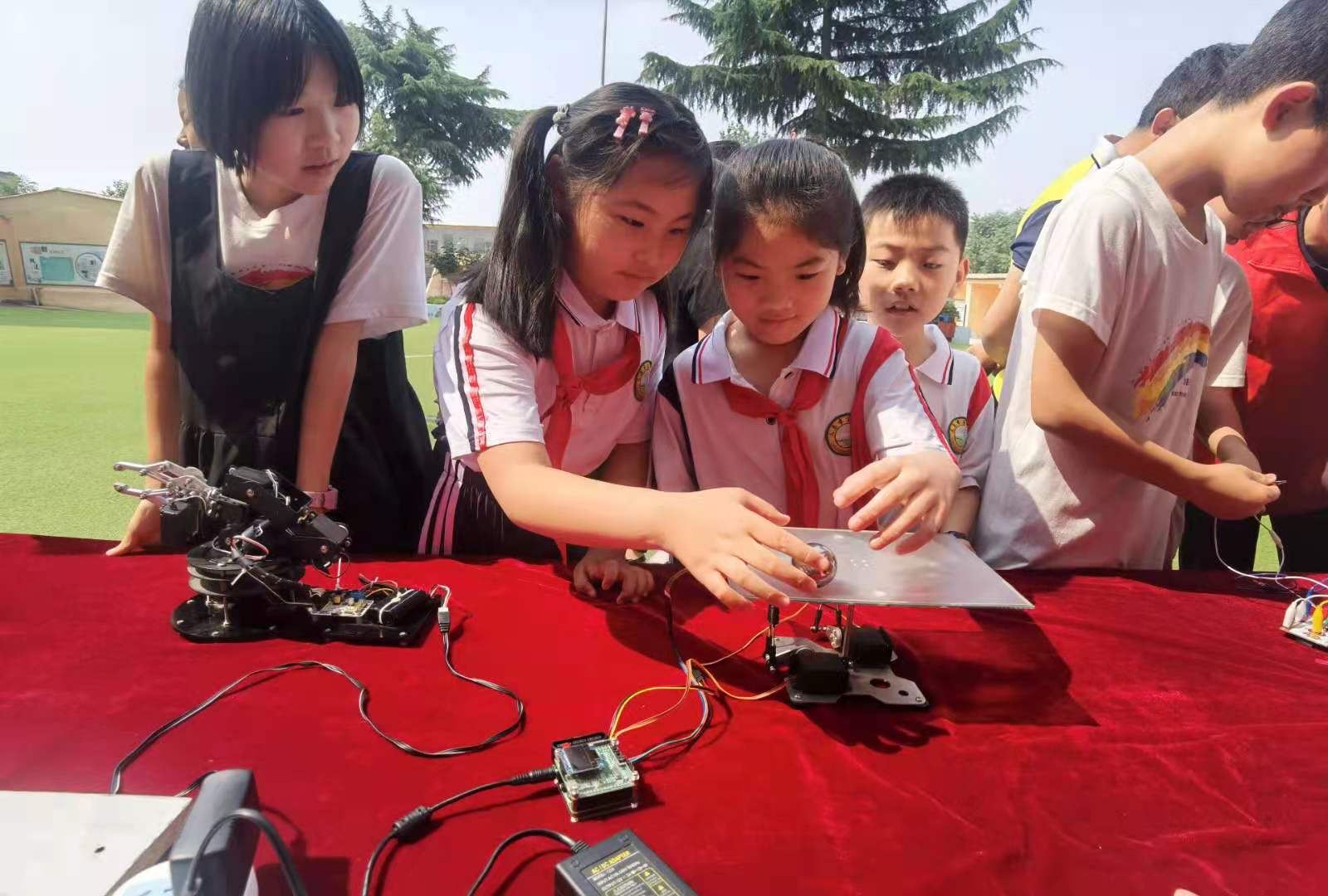 面对充满渴求眼神的小学生,志愿者们一遍又一遍地用通俗易懂的语言讲解各个展品的工作原理和动作过程,激发小学生对专业知识的渴求,引导小学生向未知领域的探索。