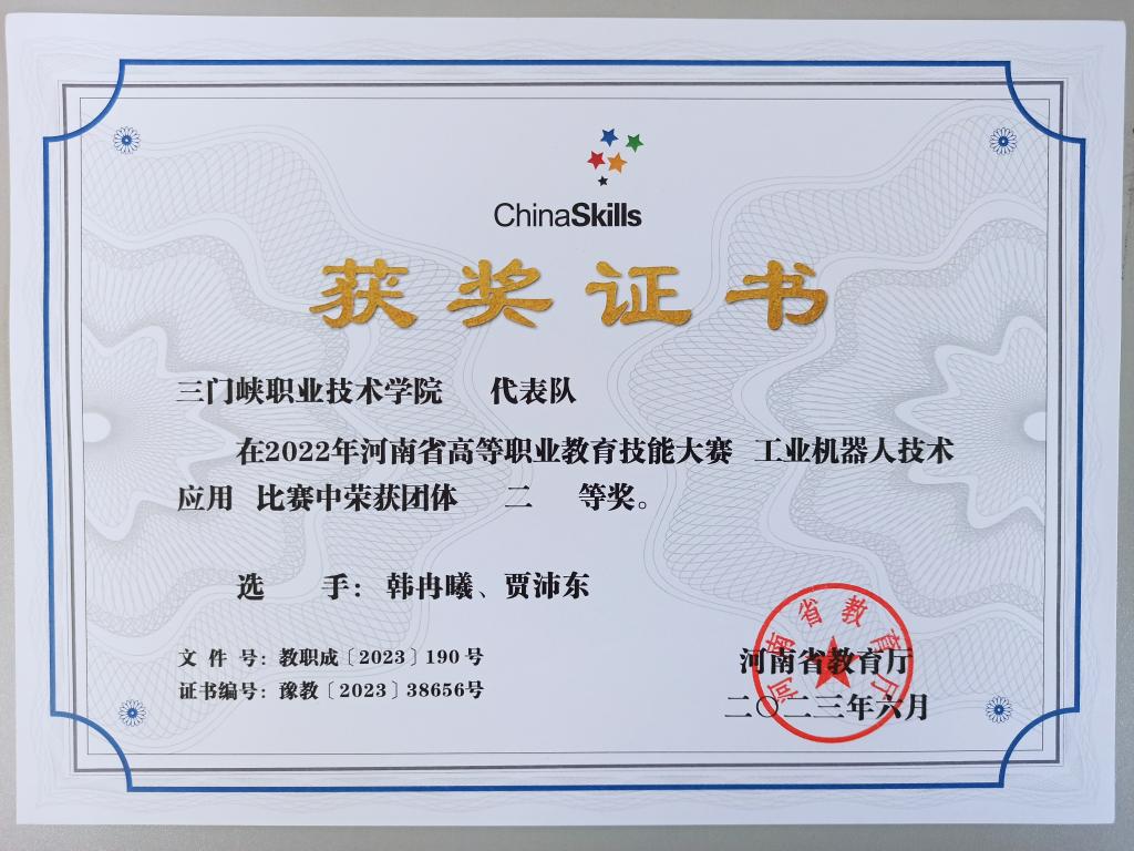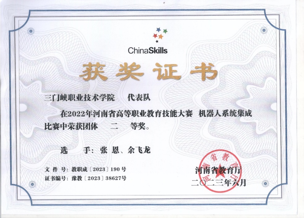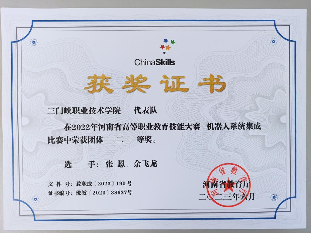 2022河南省高等职业教育技能大赛“机器人系统集成”二等奖