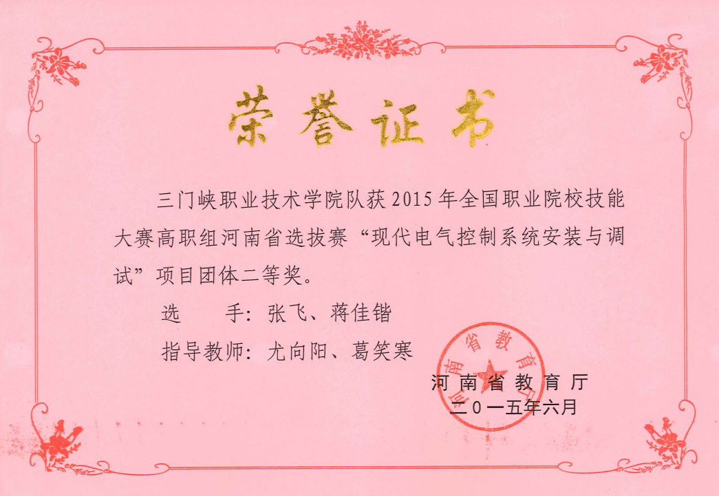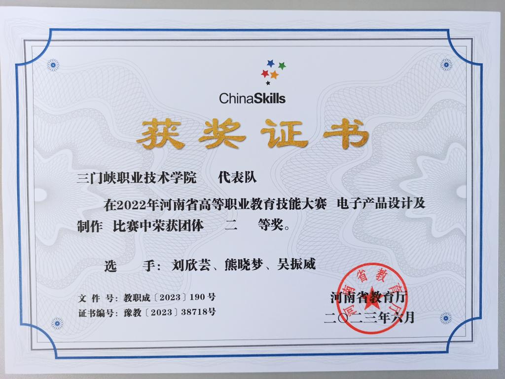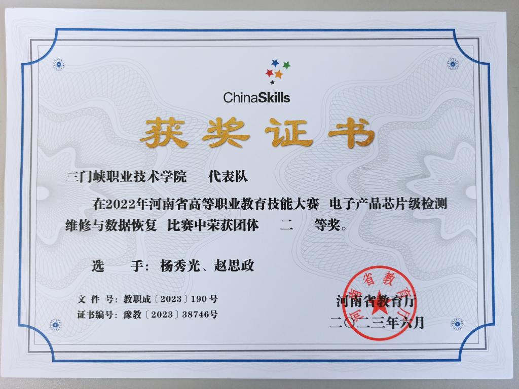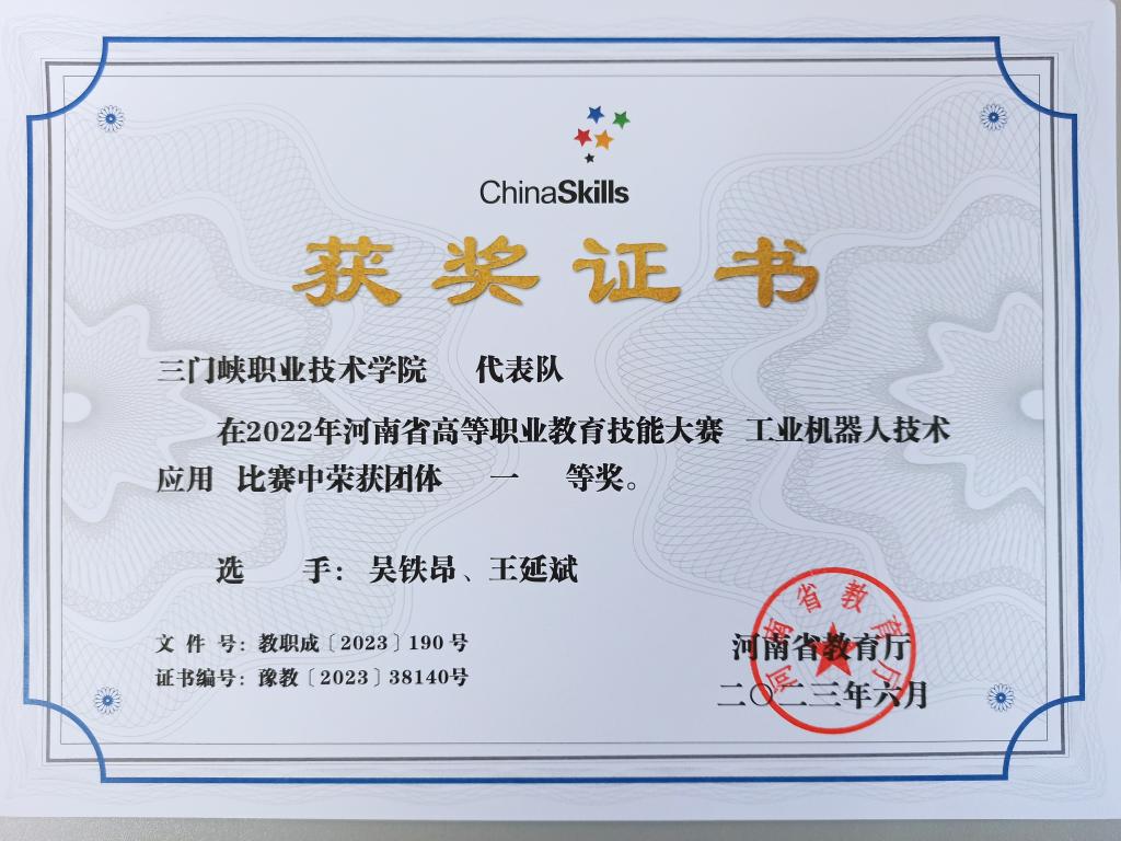 近年来,学院先后荣获河南省高等职业教育技能大赛一等奖3项、二等奖11项,三等奖14项。涵盖现代电气控制系统安装与调试、工业机器人技术应用、机器人系统集成、电子产品设计及制作、物联网技术应用、电子产品芯片级检测维修与数据恢复等赛项。