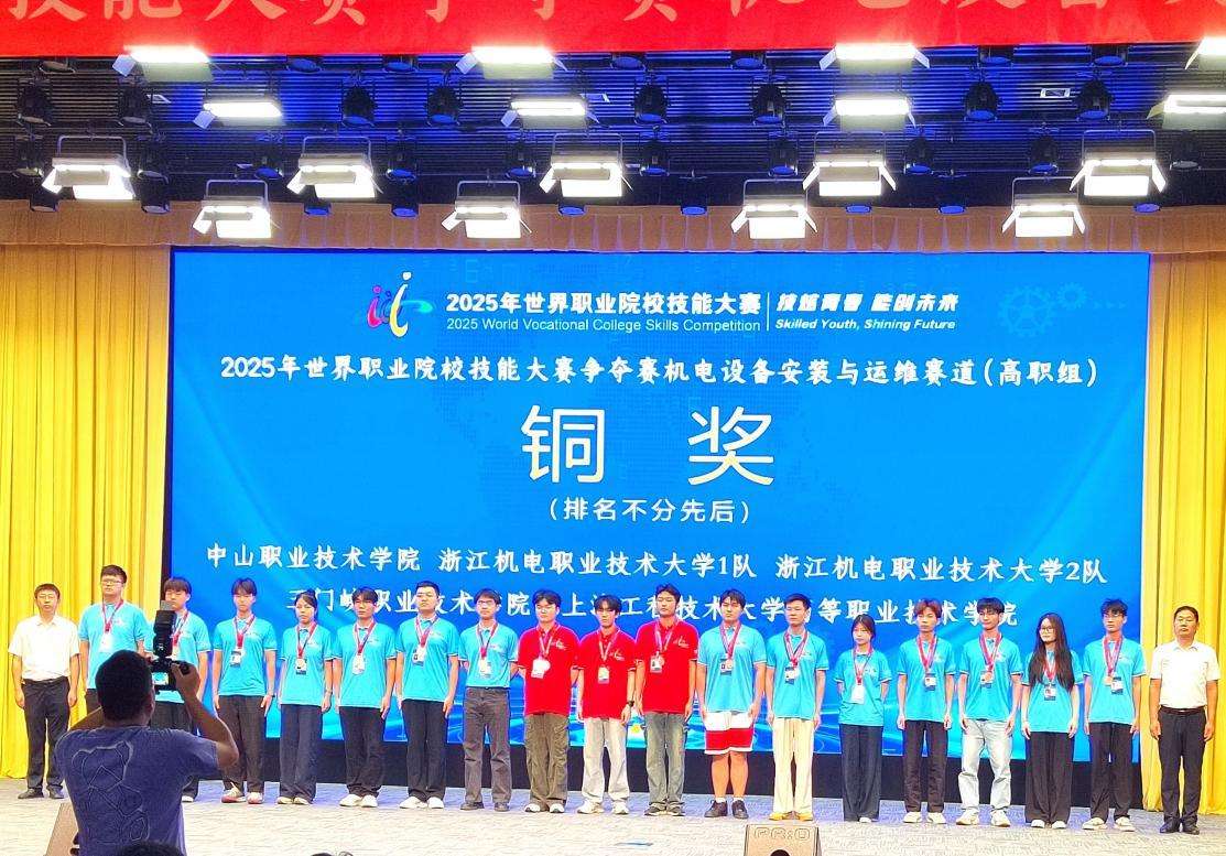 9月18日-22日,2025年世界职业院校技能大赛总决赛争夺赛“机电设备安装与运维”赛道在天津机电职业技术学院落下帷幕。由3044永利尤向阳和汽车学院雷楠楠主要指导,2023 级电气自动化技术专业李帅兵、于江坡、杜昊坤和2024级风力发电工程技术专业孙一四位同学组建的“智能光伏并网控制系统安装与运维”参赛团队与来自全国83所高职院校的90支代表队同台竞技,表现卓越,喜获铜奖,实现我校在世界职业院校技能大赛工科赛项的历史性突破。