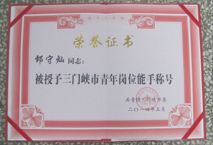 5月4日,在三门峡市2014年度职业技能大赛中,电气工程学院12级电气自动化技术一班学生郅守灿凭借精湛的专业技术和高超的专业技能,荣获维修电工工种第一名的好成绩。并被共青团三门峡市委和三门峡市人力资源和社会保障局授予“三门峡市青年岗位能手”和“三门峡市技术能手”的荣誉称号。