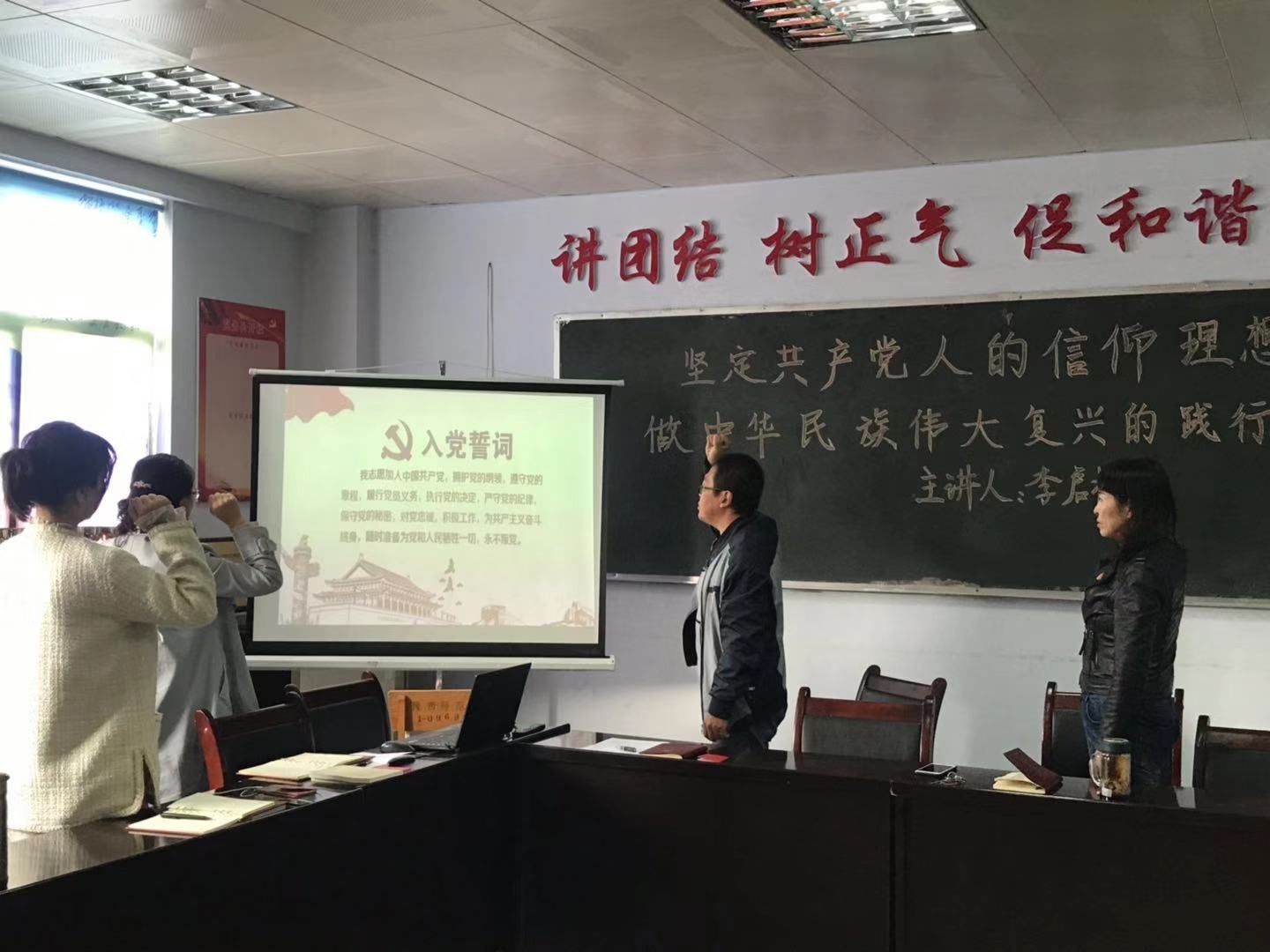 首先重温入党誓词,在教工党支部书记霍海波的领誓下,全体党员面向党旗庄严宣誓,“我志愿加入中国共产党,拥护党的纲领,遵守党的章程,履行党员义务,执行党的决定,严守党的纪律,保守党的秘密,对党忠诚,积极工作,为共产主义奋斗终身,随时准备为党和人民牺牲一切,永不叛党。”这不仅是庄严神圣的仪式,更重要的在于宣誓忠诚、牢记使命、坚定信念,表达拥护党的纲领、遵守党的章程、履行党员义务、执行党的决心、严守党的纪律、保守党的秘密、对党忠诚,愿为共产主义奋斗终身的坚定态度和决心。