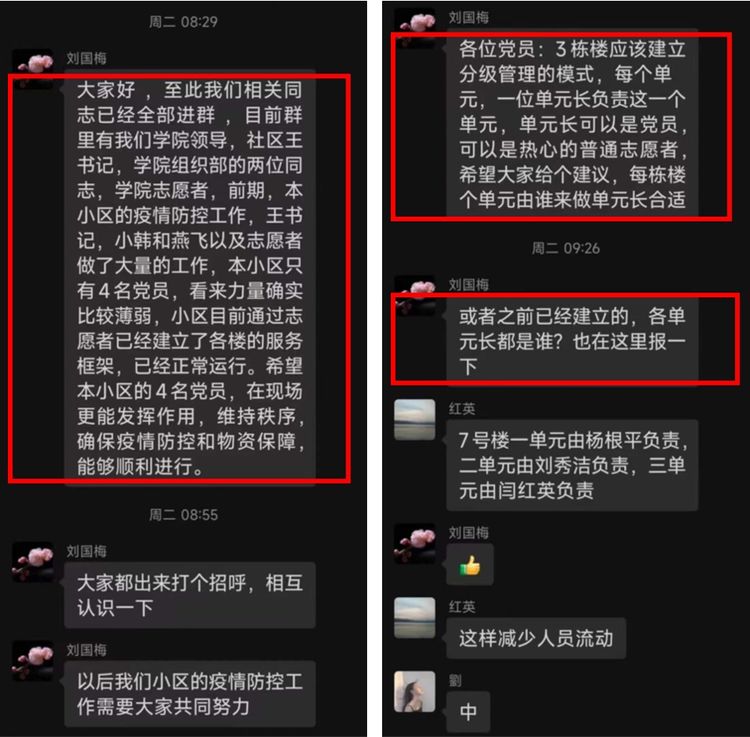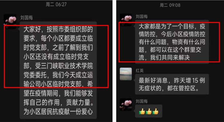 学院多名党员积极参与学苑小区党员先锋队志愿者服务活动,张倩、吴萍作为核酸检测维持秩序小组志愿者,所在小组每天辅助医护人员完成500余人核酸检修任务。范江波作为物资供应小组志愿者,参加学苑小区的馒头主食供应组志愿者服务,每天为小区取送和发放馒头。
