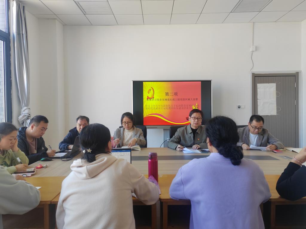 会议第二项,按照认真学习党章党规党纪或上级党组织重大部署规定动作要求结合本支部实际情况,组织委员刘新源带领大家共同学习《中共中央国务院关于弘扬教育家精神加强新时代高素质专业化教师队伍建设的意见》部分内容。