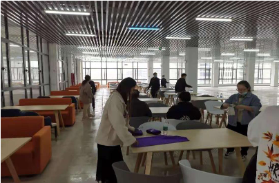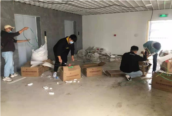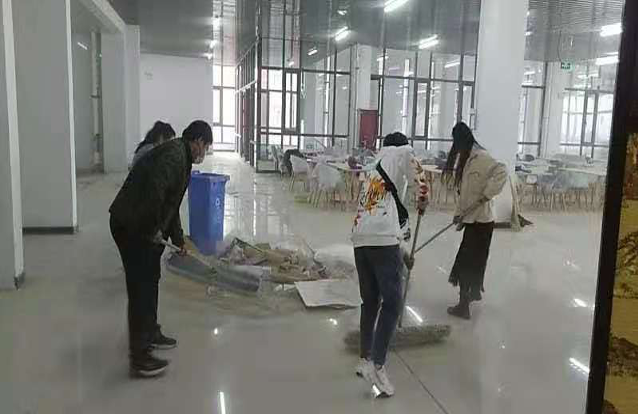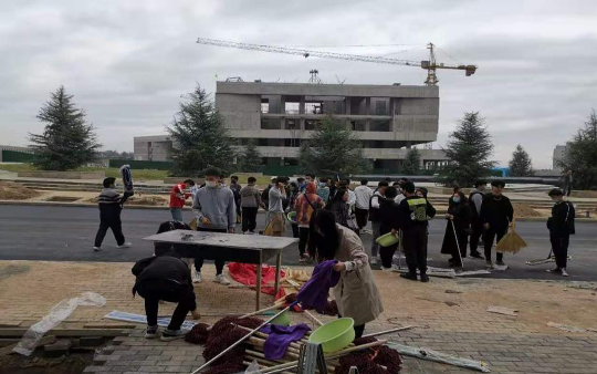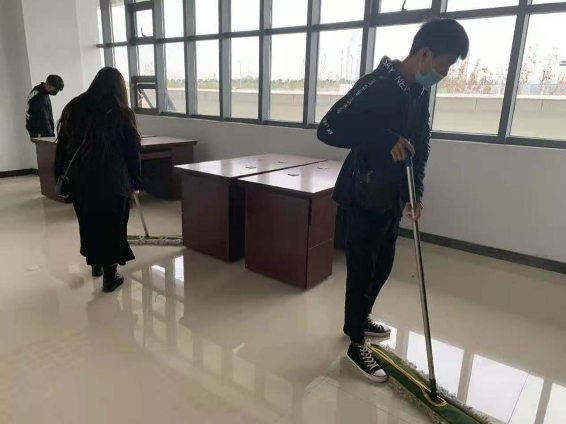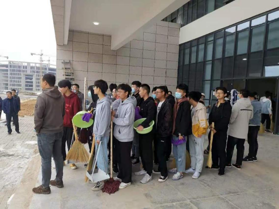志愿者们在辅导员的带领下激情高昂的奔赴新校区。志愿者们在清洁卫生的过程组织有序、分工明确,许多老师们也不甘旁观,积极的和同学们一起参加到了打扫活动中,清洁灰尘和杂物。