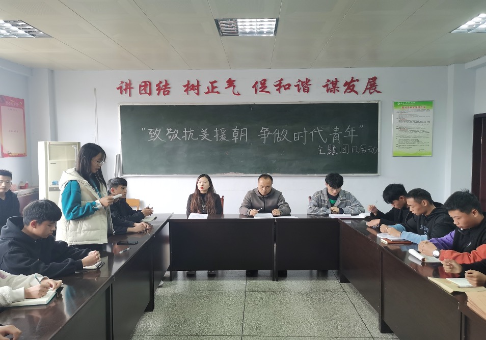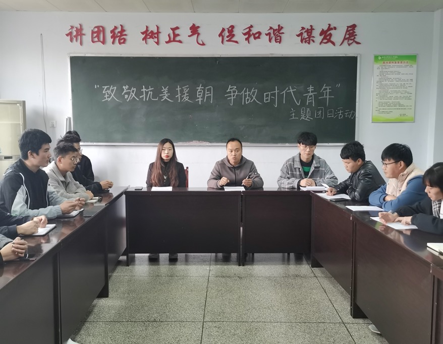 为在全校广大青年中深入宣传抗美援朝战争的光荣历程和伟大胜利,广泛开展爱国主义和革命英雄主义教育,在新时代继承和弘扬伟大的抗美援朝精神和民族精神,激励动员广大青年更加紧密地团结在以习近平同志为核心的党中央周围,增强“四个意识”、坚定“四个自信”、做到“两个维护”,传承红色基因,为决胜全面建成小康社会、夺取新时代中国特色社会主义伟大胜利、实现中华民族伟大复兴的中国梦贡献青春力量,10月30日中午,3044永利在3409会议室开展“致敬抗美援朝 争做时代新人”主题团日活动。