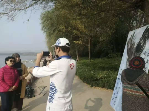 早晨9点,志愿者们统一着装来到砚池边进行志愿服务活动,5人一组在湖边进行巡逻,耐心地为同学们讲解保护白天鹅知识,及时劝阻同学们的不文明行为,并对砚池周边的垃圾进行清理打扫。