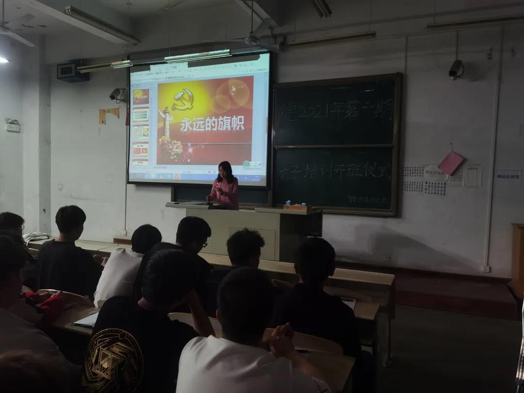 开班仪式结束后,学院党总支书记刘国梅以“永远的旗帜”为题为入党积极分子讲授第一堂党课。她要求,入党积极分子要掌握中国共产党的基本理论知识,了解中国共产党光辉历程,清楚建党节的由来、党的性质和党的最高理想,深刻学习领会习近平新时代中国特色社会主义思想中“八个明确”和“十四个坚持”的精神实质和丰富内涵,坚定理想信念,学好专业知识,增长专业本领,为建设富强民主文明和谐美丽的社会主义现代化强国贡献力量。