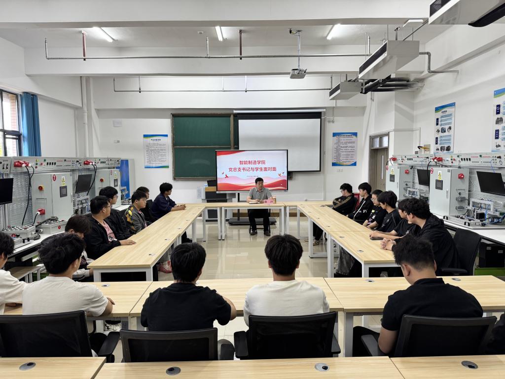 座谈会伊始,党总支书记秦冲以电气自动化专业的发展前景为切入点,展开了生动且富有深度的分享。他指出,随着智能制造、工业 4.0 等新兴产业的蓬勃发展,电气自动化领域正迎来前所未有的发展机遇。从智能电网的建设到工业自动化生产线的升级,电气自动化技术广泛应用于各个行业,市场对专业人才的需求持续增长。他详细分析了行业发展趋势,描绘了电气自动化专业广阔的未来图景,极大地增强了同学们对专业的认同感与自信心。