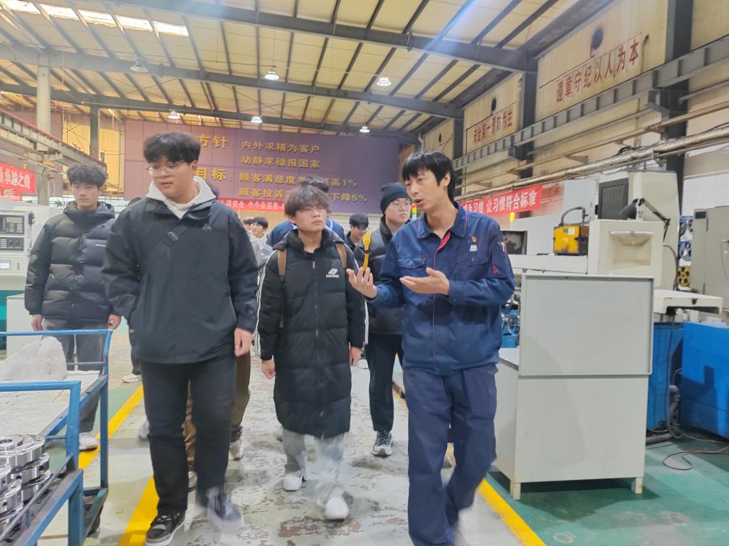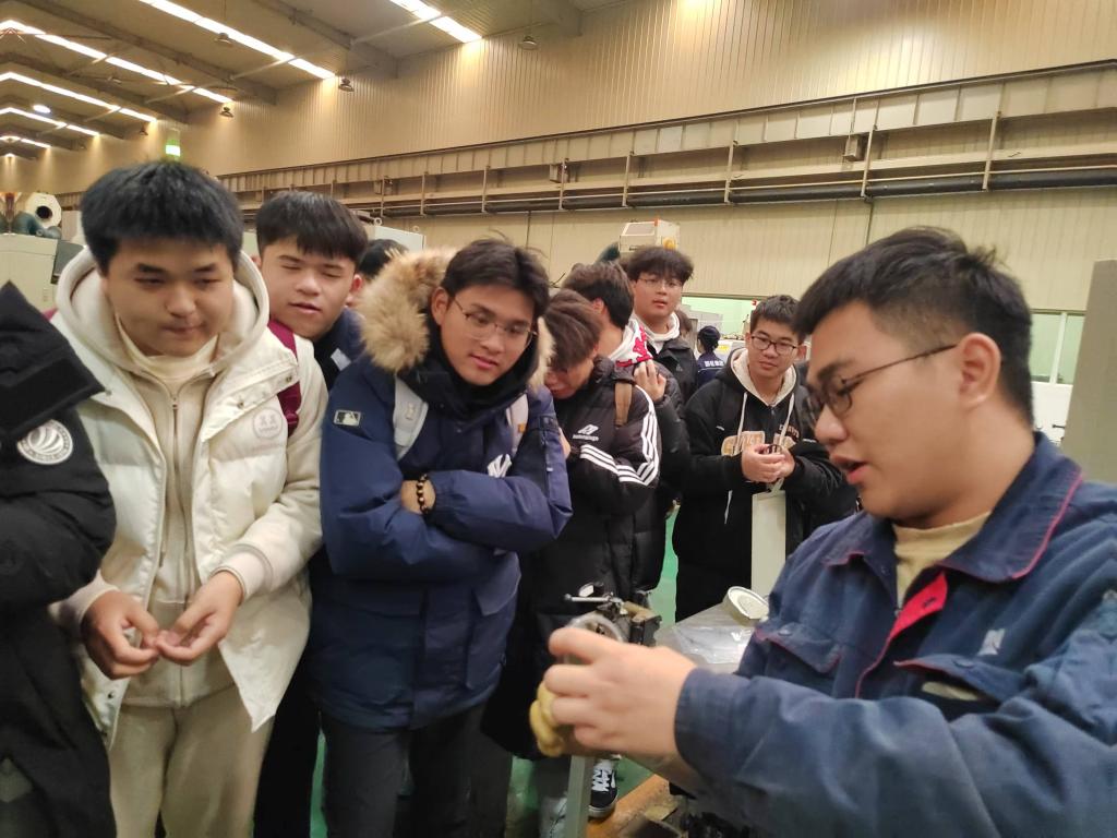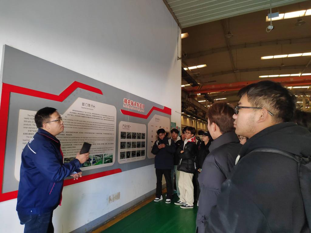 随后,学生们走进了洛阳轴承研究所有限公司的生产车间。这里是我国轴承技术创新的重要阵地之一,拥有先进的生产设备、精密的检测仪器以及一流的科研团队。在公司工作人员的带领下,学生们实地参观了轴承的生产制造流程,从原材料的筛选、加工,到零部件的装配、调试,再到成品的质量检测,每一个环节都展现出高度的专业化和精细化。学生们亲眼目睹了现代化工业生产的高效与严谨,深刻体会到了工程实践中的技术要求和质量把控的重要性。同时,他们还有机会与已在洛阳轴承研究所有限公司工作的学长进行交流互动,了解到当前各个岗位的工作流程,进一步激发了学生们对专业知识的探索欲望及对未来的工作的憧憬。