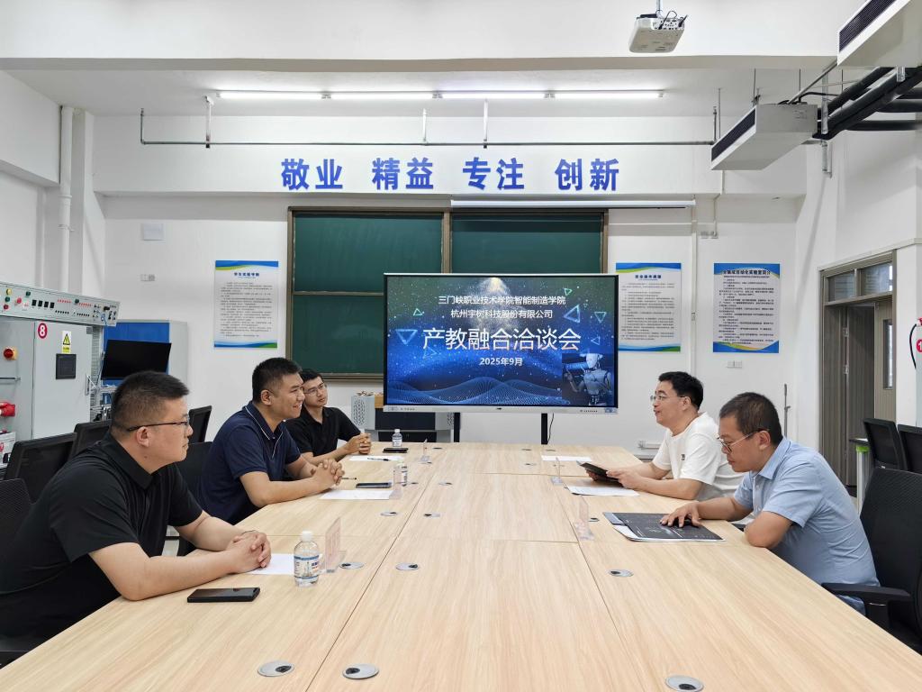 9月11日,杭州宇树科技有限公司代表团到访智能制造学院,双方就创新人工智能领域人才培养模式、深化产教融合进行深入洽谈。党总支书记秦冲、院长霍海波出席座谈会。
