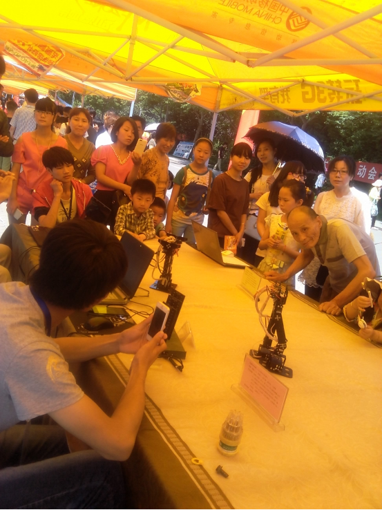 这不是武术,也不是体操,而是在三门峡市第三届青少年创新创意大赛现场里两个6自由度跳舞机器人的精彩表演。这两位身份特殊的表演者在行进过程中,顺利而圆满地完成了前翻身、后翻身、立正、行走等一系列动作,引来了市民一波又一波的围观和一浪高过一浪的欢呼声。它们是三门峡职业技术学院电气工程学院的同学们为本次创新创意大赛而专门设计制作的新作品。